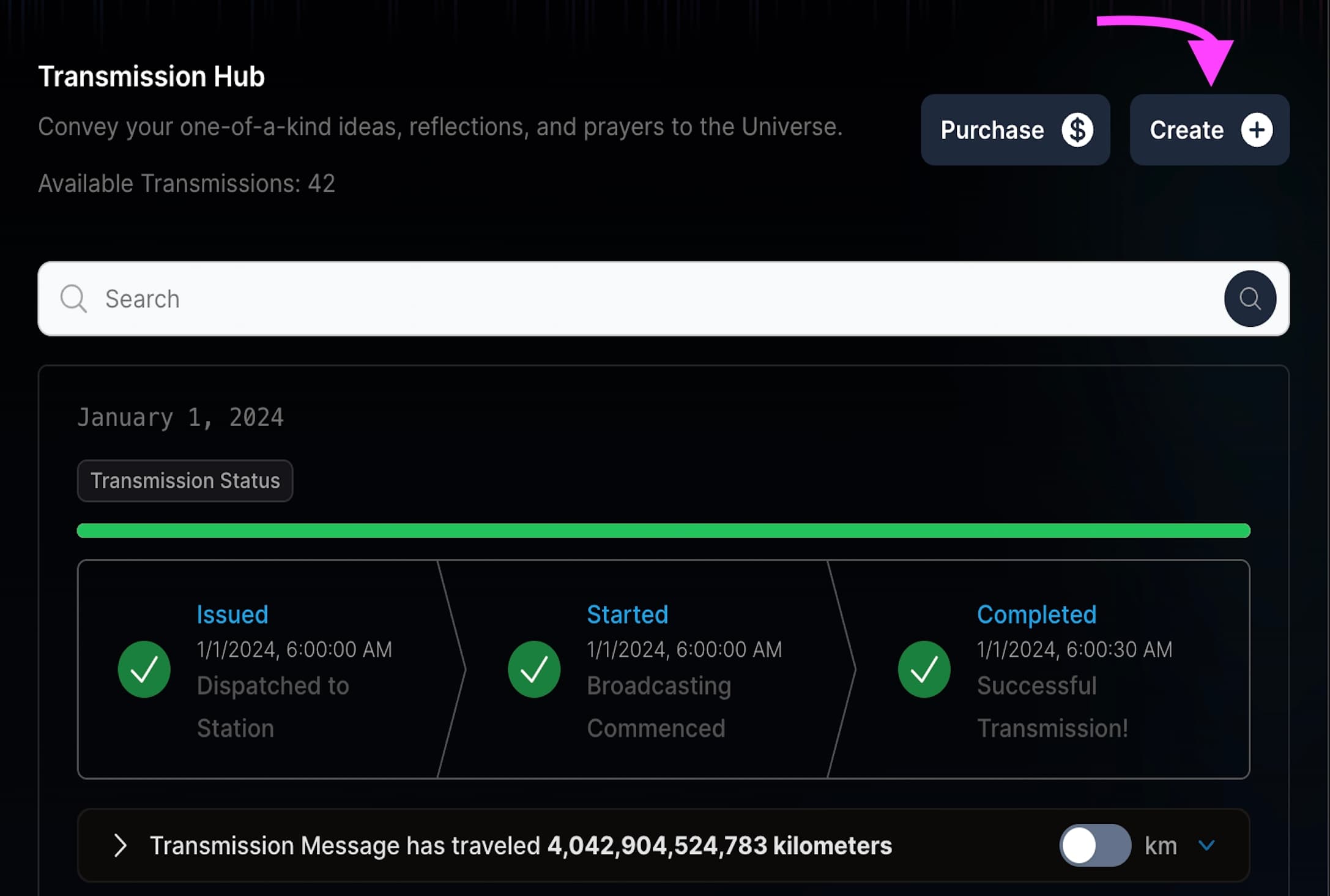 InfinitySpeak will transmit your message into the vast expanse of space, where it will journey through the cosmos for eons. Through a verse, a heartfelt plea, a call for action, or even a greeting to potential extraterrestrial beings, your message will be emitted into space via radio transmission. Stay tuned to witness its remarkable journey!
